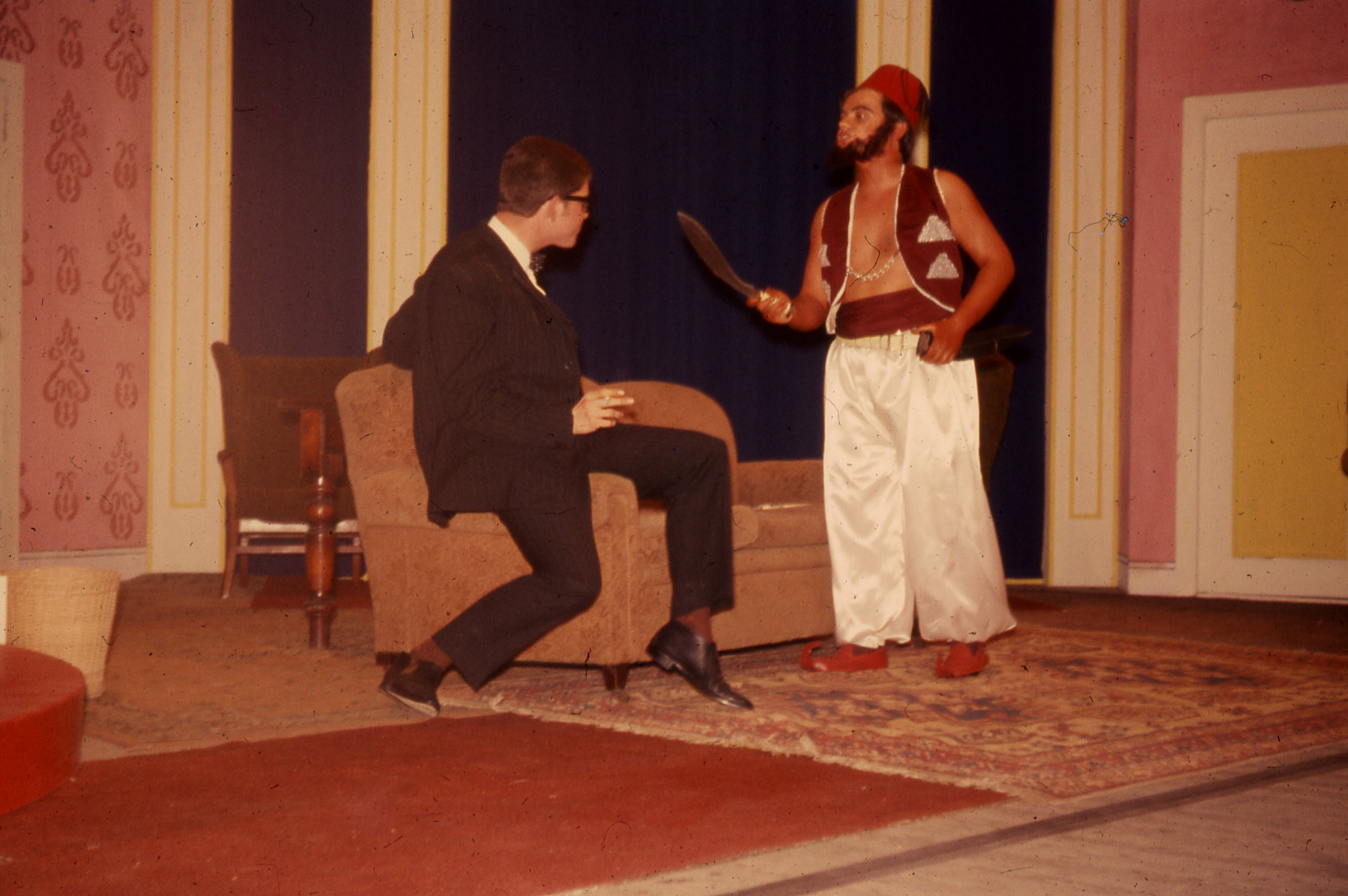 Tony Scudamore, who did his wartime service with the British Army in North Africa, has settled into a peacetime career with the Foreign Office. Tony displays almost a bit too much British reserve for his American wife, Sally, as does his older brother, Ken, on leave from his tea plantation in the tropics, and when Jack Krasner, a friend from the States, arrives unexpectedly she jumps at his invitation for an evening on the town in London. Tony and Ken are not won over so easily, particularly as the senior Scudamores (he's also in the Foreign Office) have suggested a family dinner for the evening. So the upshot is that Sally and her old beau go one way, while Tony and Ken go another. Nobody stops to think much about a certain letter which arrived that morning informing Tony that he has been remembered in the will of an Arab sheik whose life he saved during the war. By the end of the evening the fog is too thick for Sally to get home, but Tony and Ken make it, and so does Haroun El Bahn (the sheik's emissary)