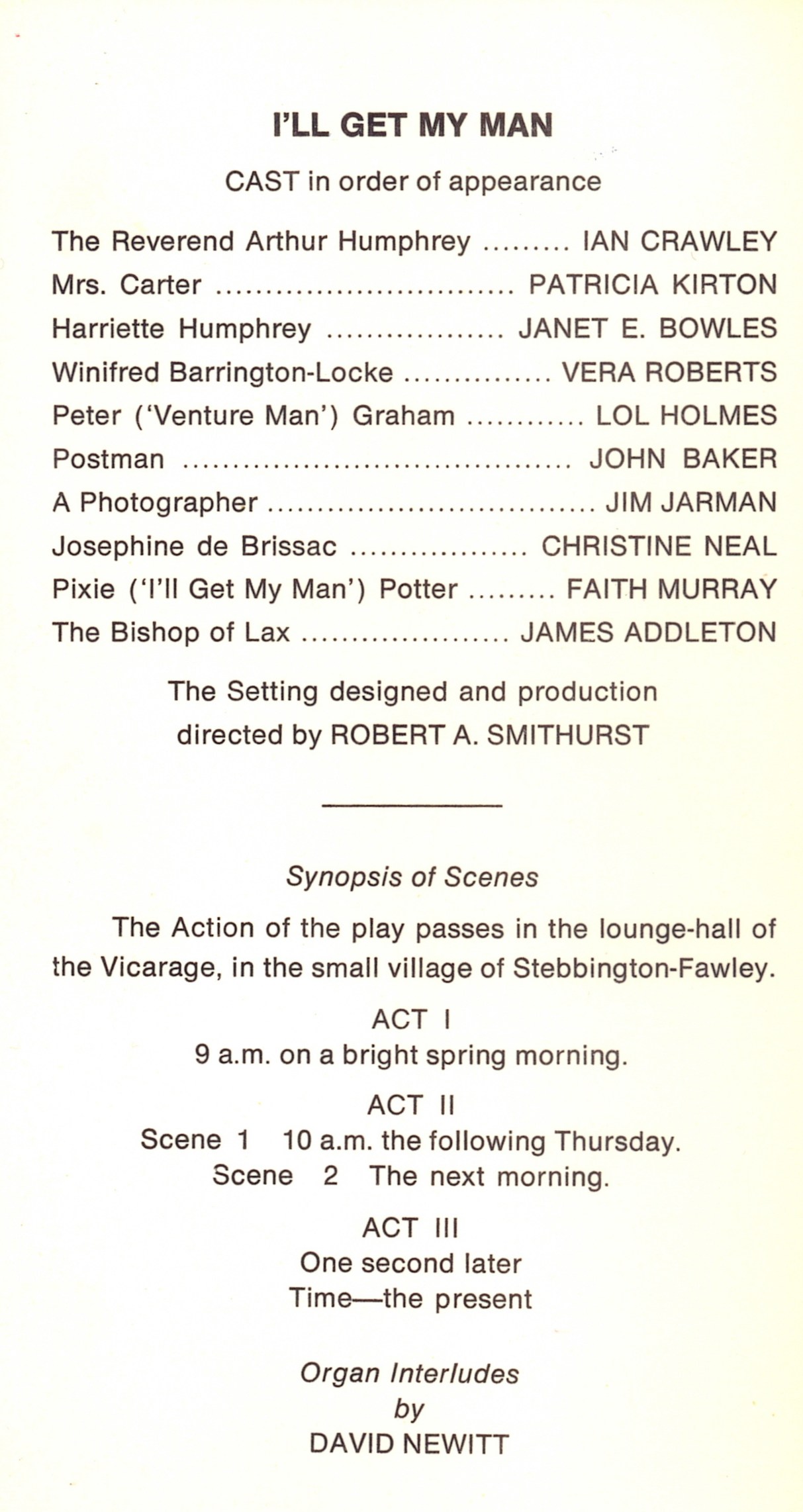 Vicar advertises for a wife in order to escape domineering sister, as TV star nephew seeks refuge